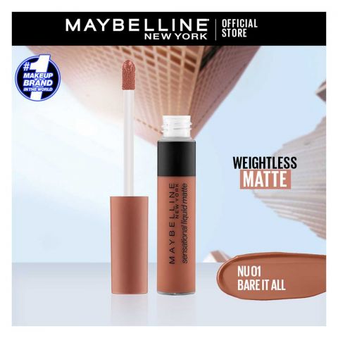 Maybelline New York Sensational Liquid Matte Lip Tint - Long lasting, Lightweight, Soft Matte Liquid Lipstick - Bare It All