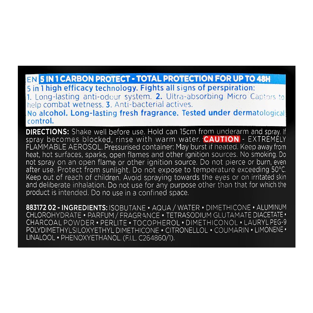 L'Oreal Paris Men Expert Carbon Protect Total Protection Anti-Perspirant Deodorant Spray, 250ml