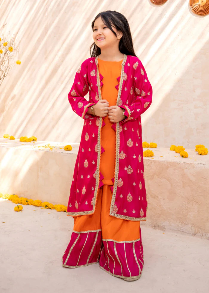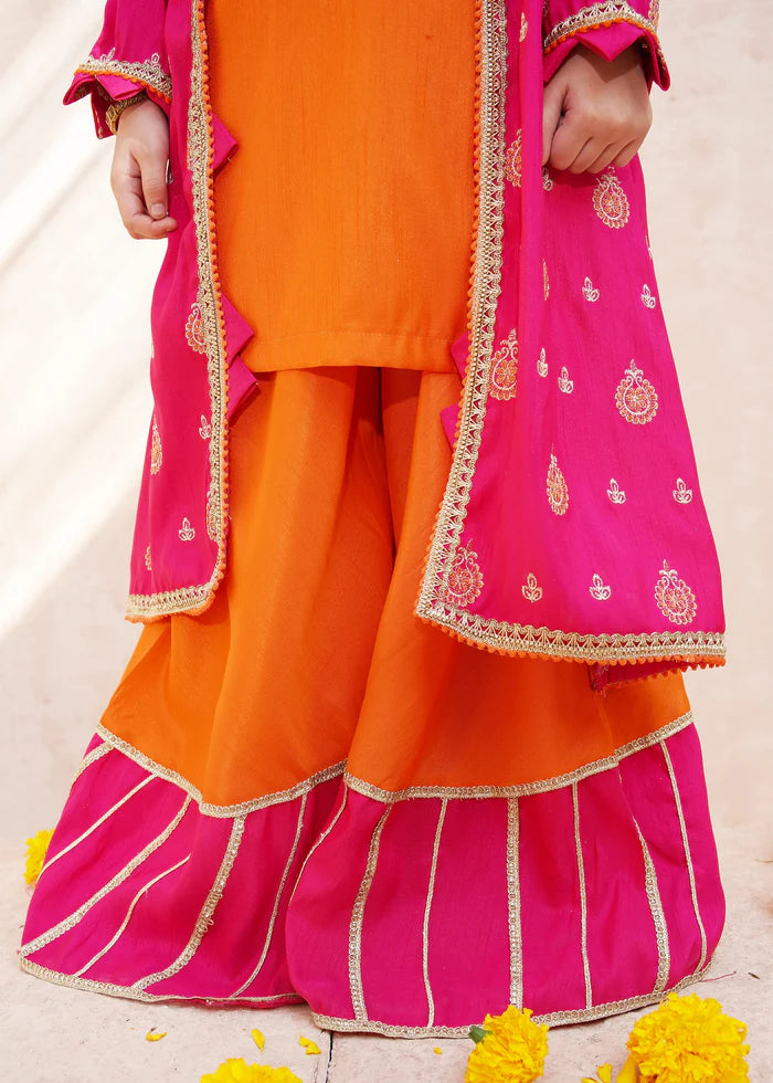 3 Piece Orange Rawsilk Embroidered Gharara
