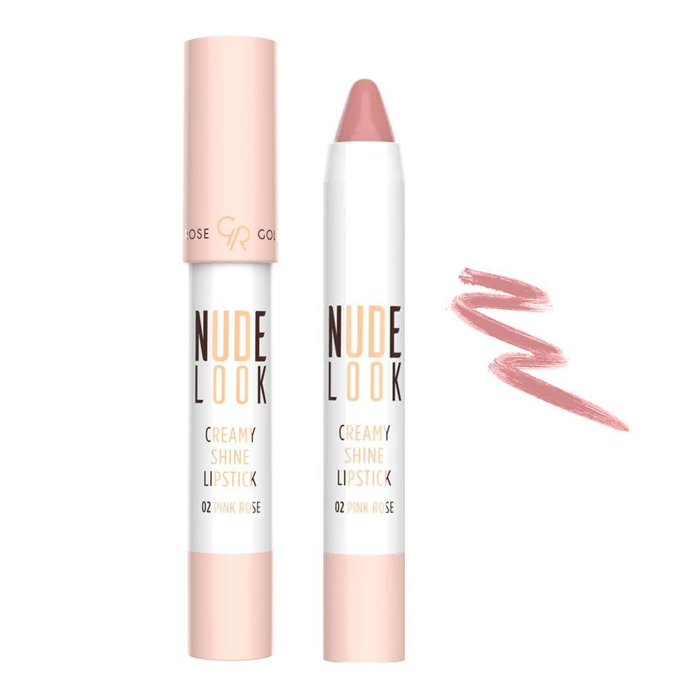 Golden Rose Nude Look Creamy Shine Lipstick, 02, Pink Rose