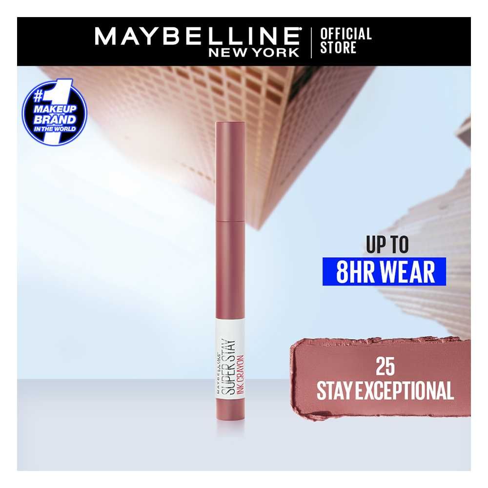 Maybelline New York Super Stay Ink Crayon Matte Longwear Lipstick, 8hrs long wear Matte Lipstick - 25 Stay Exceptional