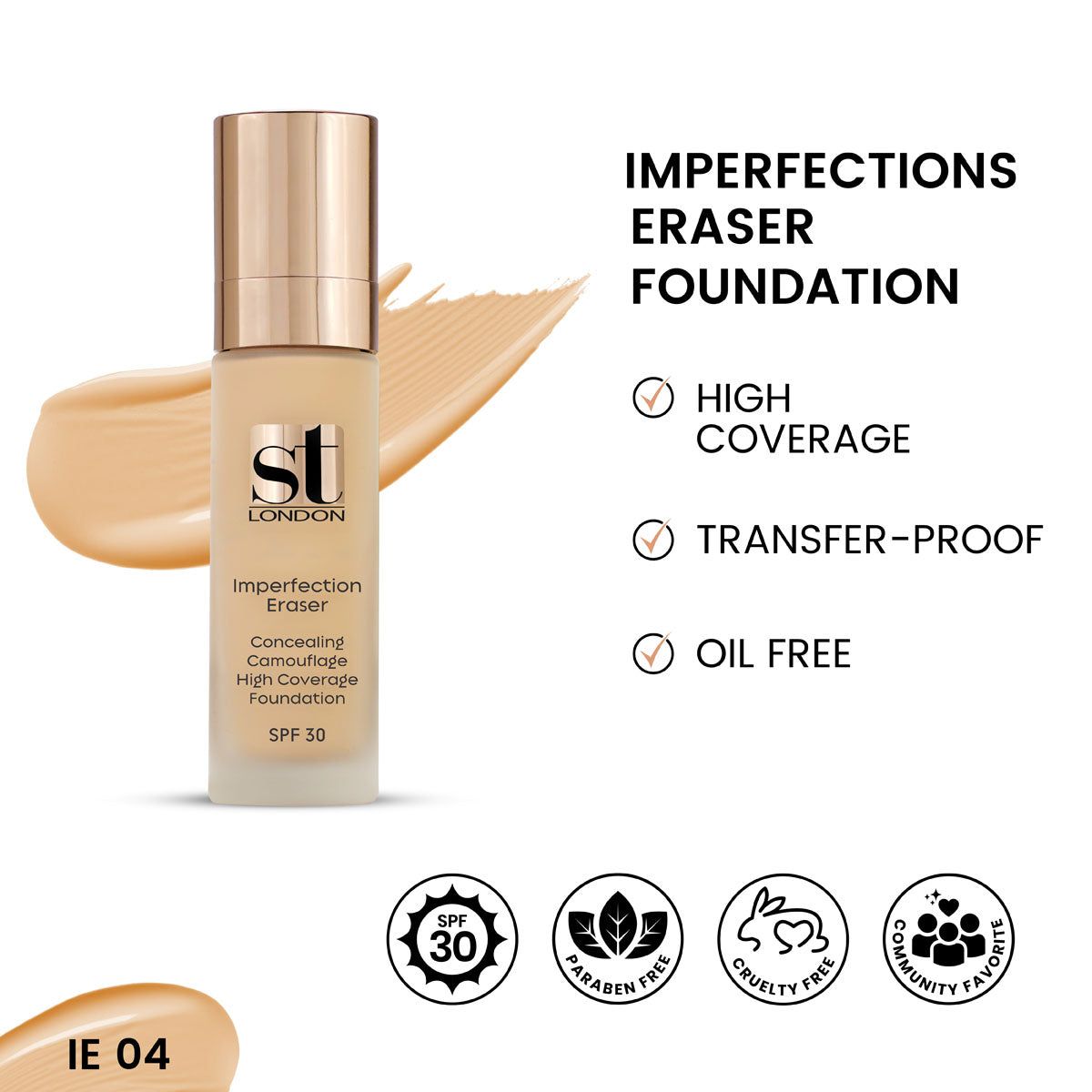 ST London Imperfection Eraser Face & Body Foundation, SPF 30, JE 02, All Skin Types